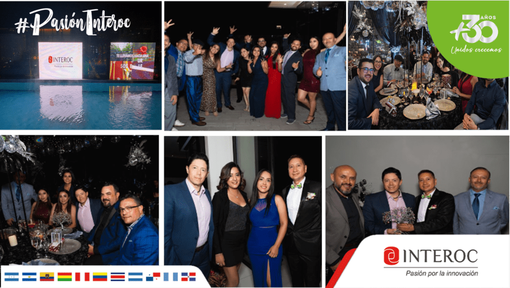 El evento tuvo lugar en el penthouse del Edificio Qorner de la Ciudad de Quito, lugar que goza de una vista panorámica privilegiada de la Capital. Este encuentro fue el espacio para reconocer a los equipos comerciales y líderes de las compañías quienes han sido un pilar fundamental para su crecimiento y éxito, destacando el esfuerzo y dedicación del equipo de trabajo de Interoc así como hitos que marcaron este año como el lanzamiento de Floribloom el nuevo integrante de nuestro portafolio de fungicidas para cultivos de rosas y flores de verano.
