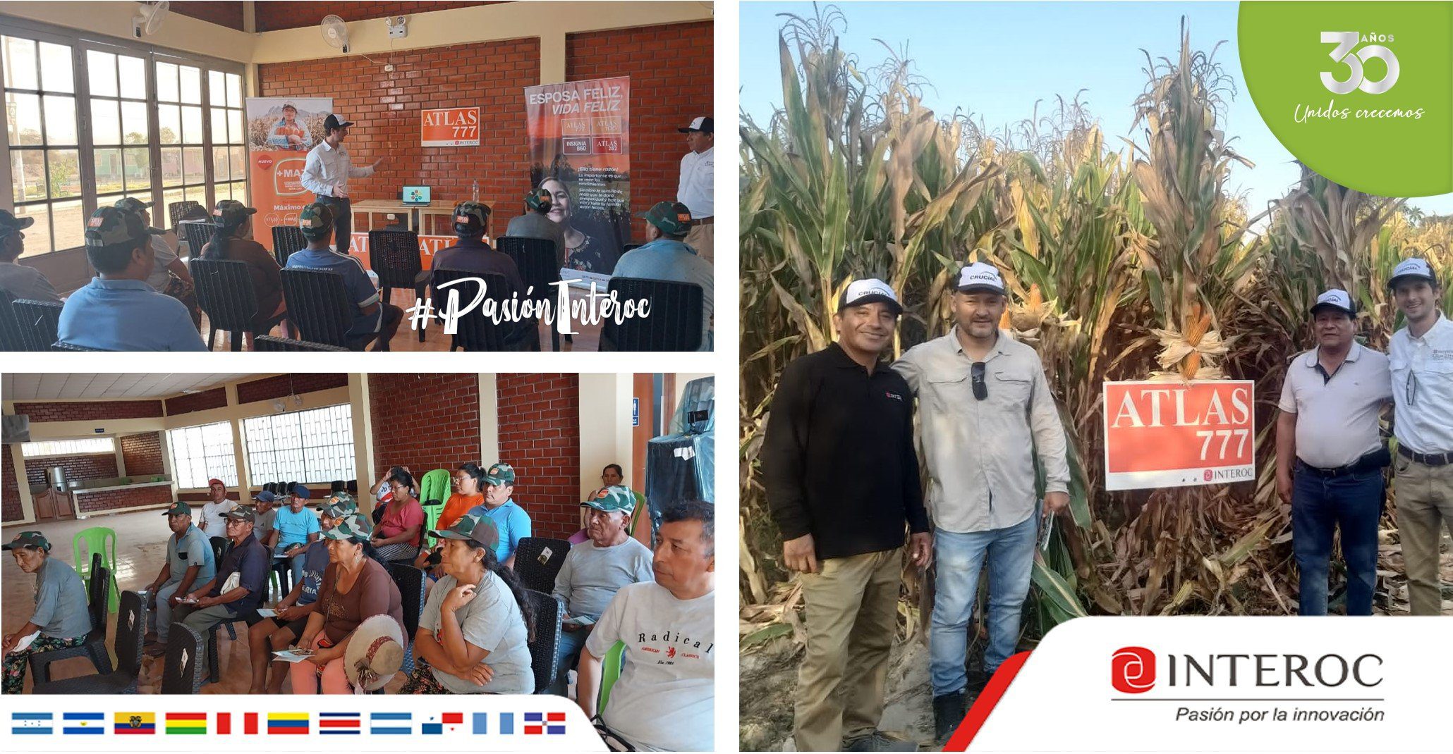 El equipo de marketing de Semillas de Interoc Perú, liderado por Ignacio Butler, visitó las zonas de Ica, Palpa, San Juan y Nazca con el objetivo de brindar capacitaciones y tomar contacto directo con los agricultores para contarles y mostrarles los beneficios del Trío Perfecto: Semilla ATLAS 777, Bioestimulante +MAZ 777 y Crucial. Paquete tecnológico de Interoc que permite obtener los más altos rendimientos en toneladas por hectárea.